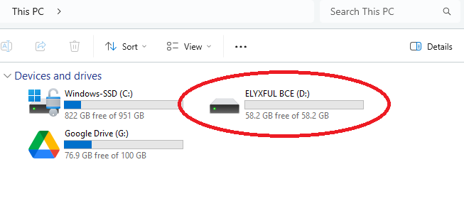 After connecting the charger to the headset and the USB end into your device, open ThisPC.