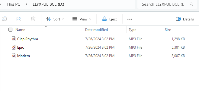 - Select the USB storage and you will see these sample MP3 files that were pre-installed.