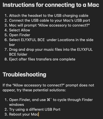 If you do have music files, you can treat our headset as if it is a USB flash drive. Plug it into your laptop, computer or phone and copy your audio files into the folder.