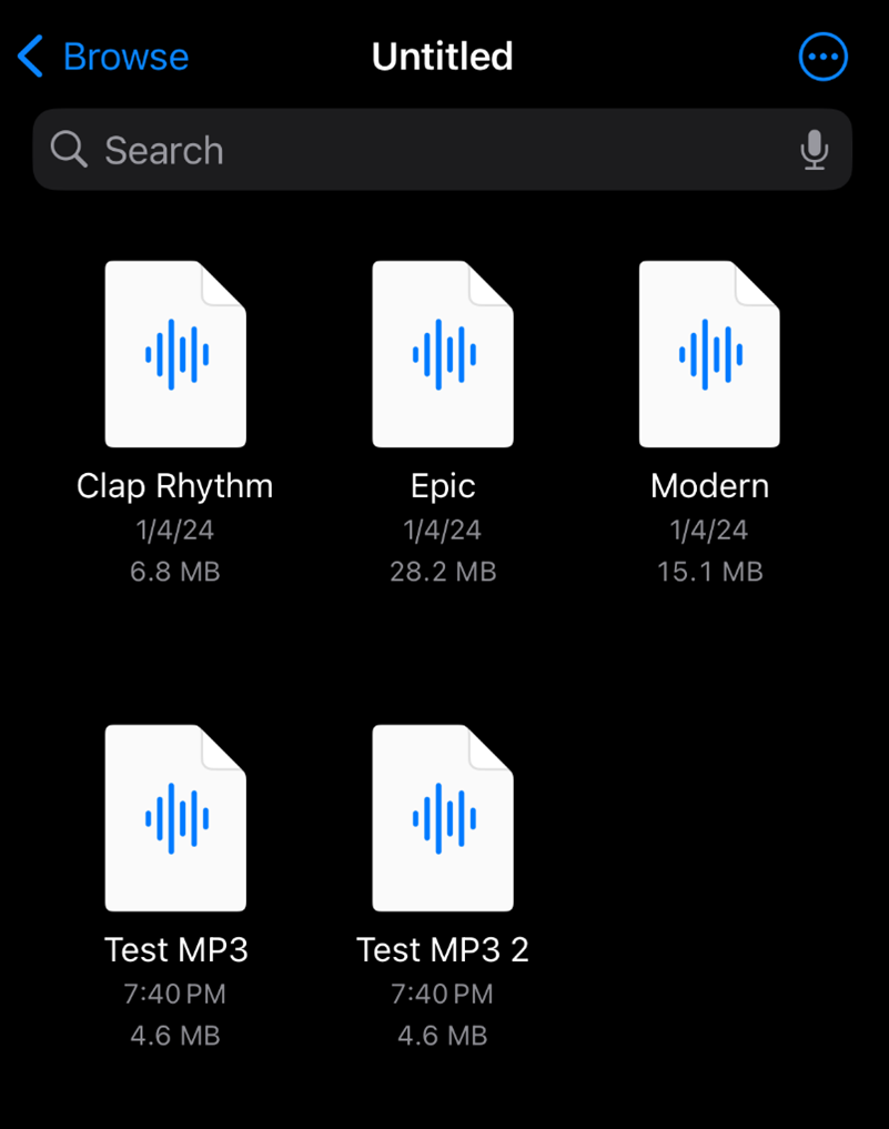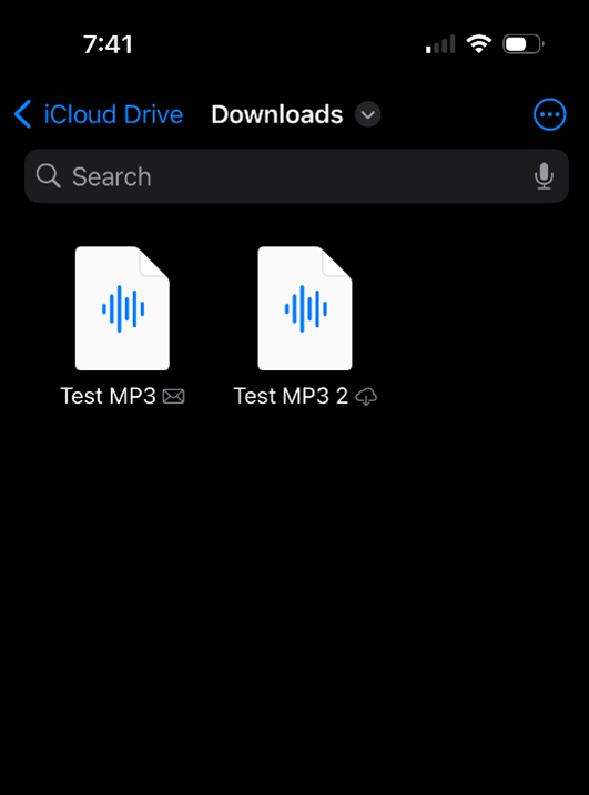 After connecting the charger to the headset and the USB end (with USB-C adapter or your own) into your phone, open My Files and find your audio files.